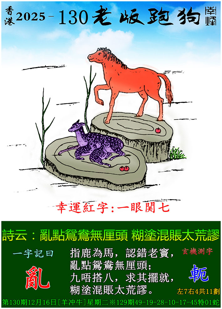 主题 :130期老版跑狗一字記之曰:【亂】 玄機測字:《軛》