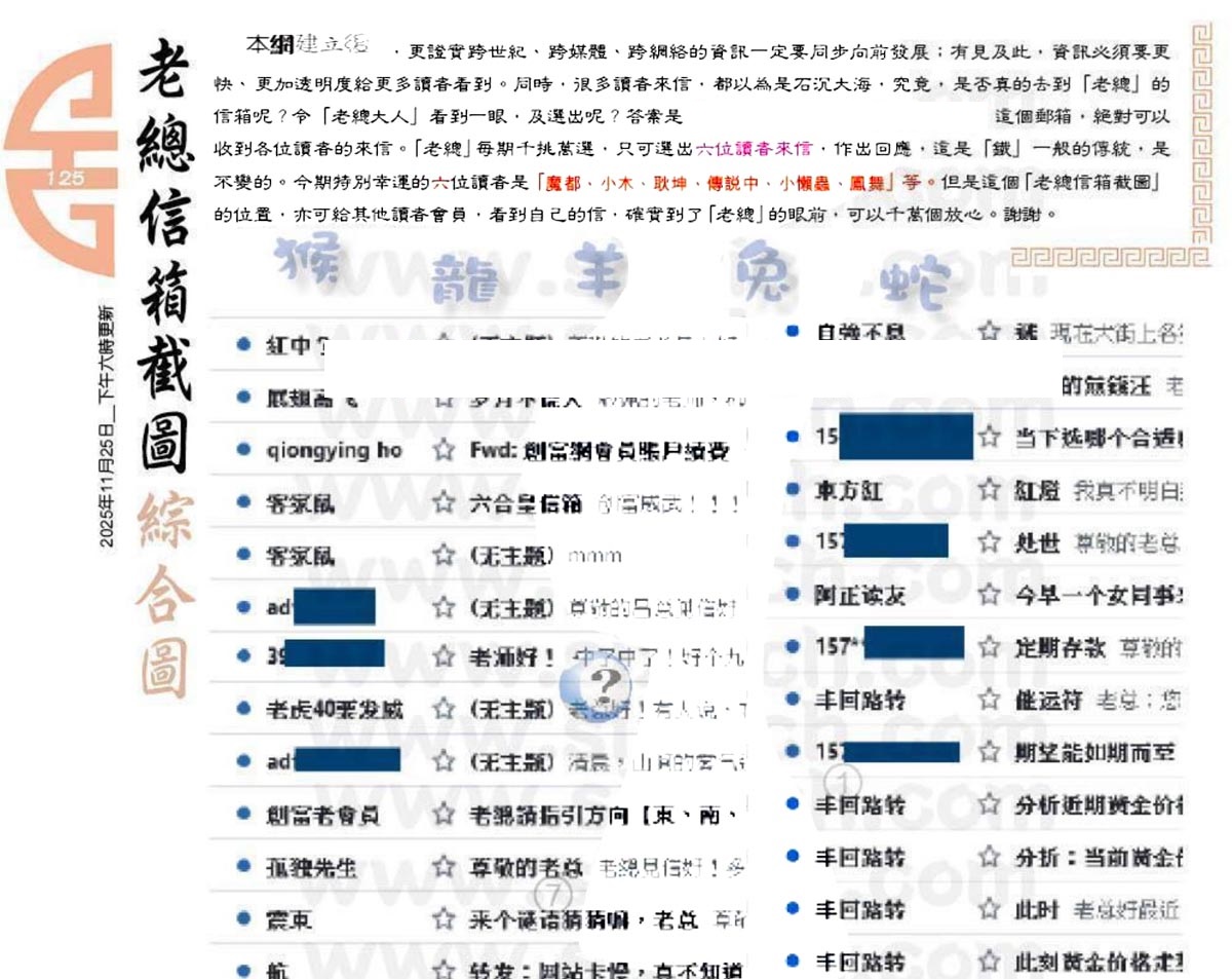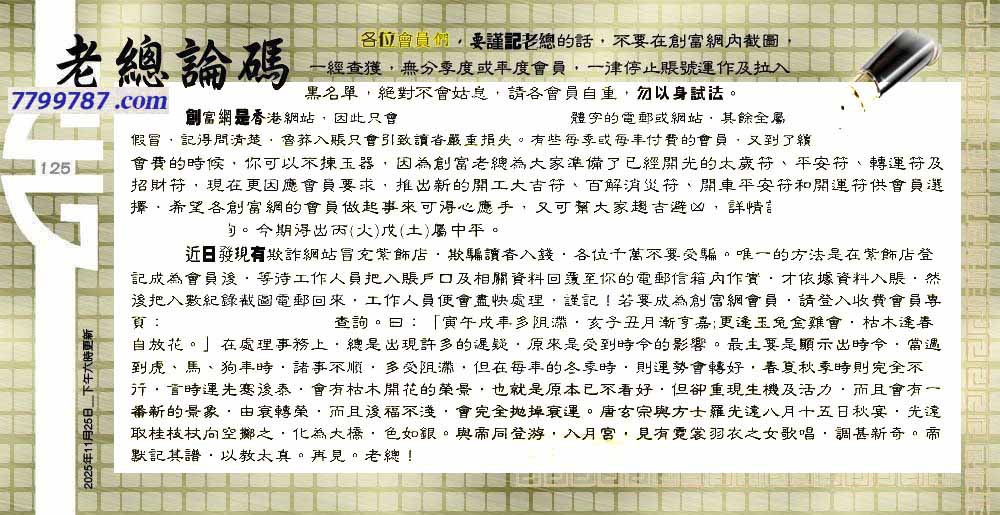 125期:六合皇金句/老总论码/萧公子/林大师/五行夺码/老总信箱截