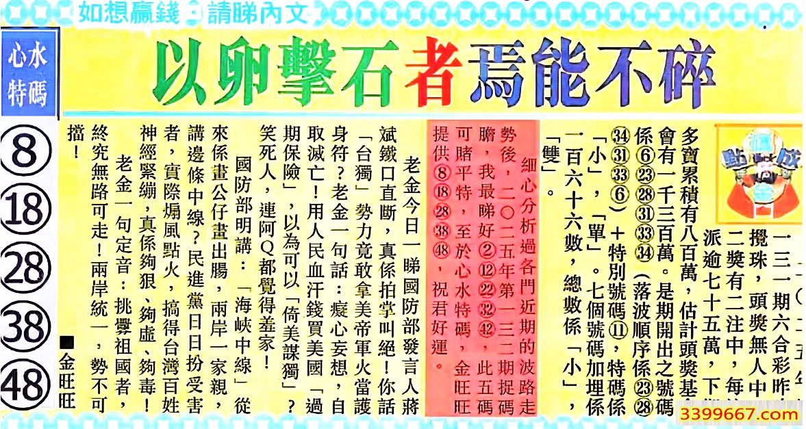 | 主题 :132期:金旺旺信箱彩民推荐→→《成見誤人要看清》 |