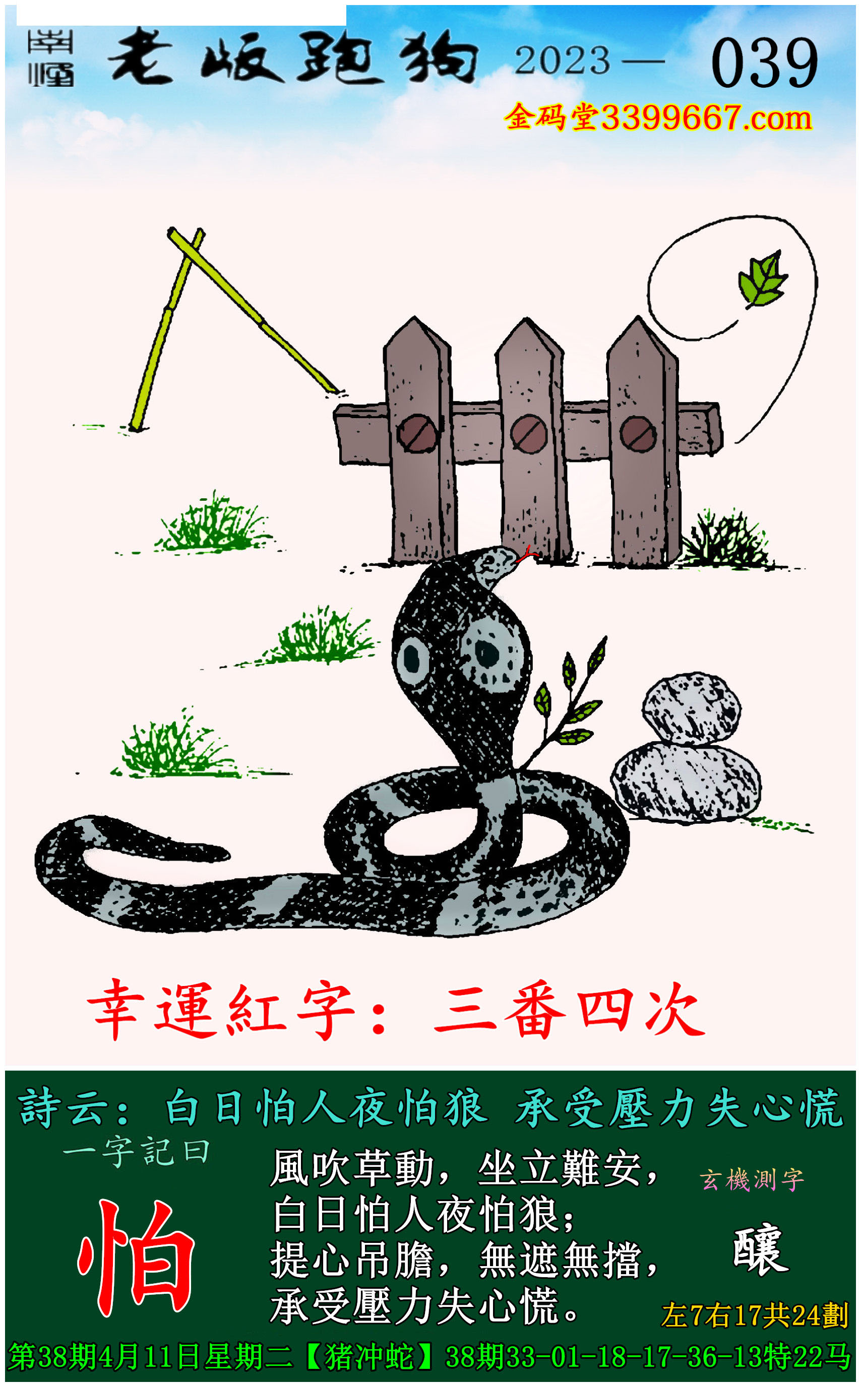 | 主题 :039期老版跑狗一字記之曰:【怕】玄機測字:《釀》 |