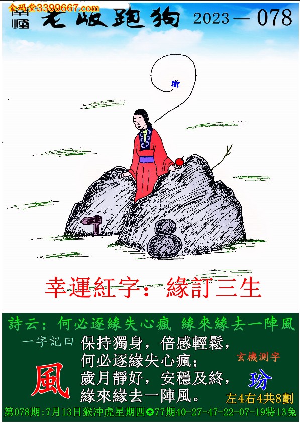 | 主题 :078期老版跑狗一字記之曰:【風】 玄機測字:《玢》 |