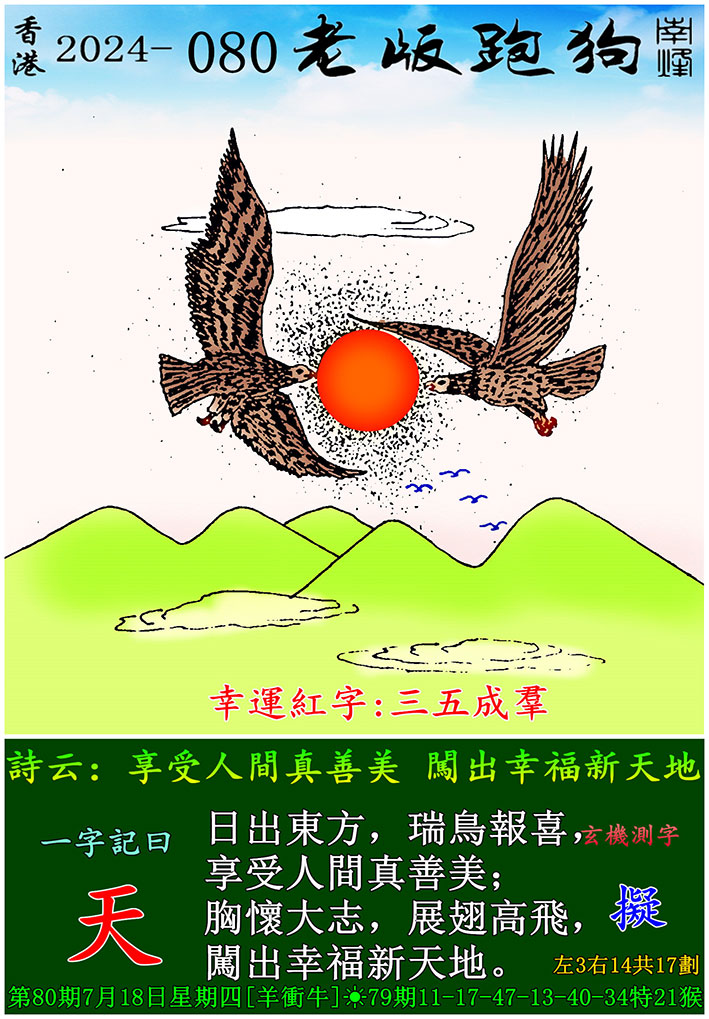 | 主题 :080期老版跑狗一字記之曰:【天】 玄機測字:《擬》 |