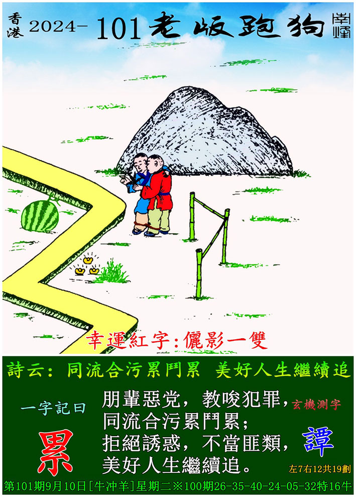 | 主题 :101期老版跑狗一字記之曰:【累】 玄機測字:《譚》 |