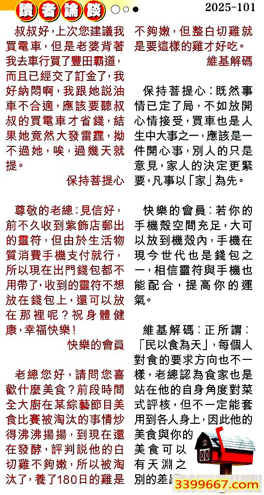 主题 :101期:彩民推荐〖貼信讀者論壇〗 |