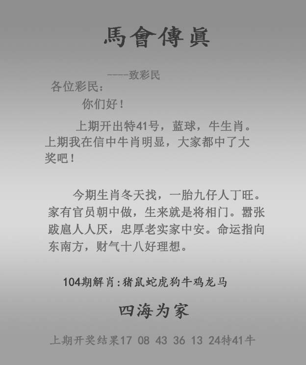 主题 :104期:正马会传真 |