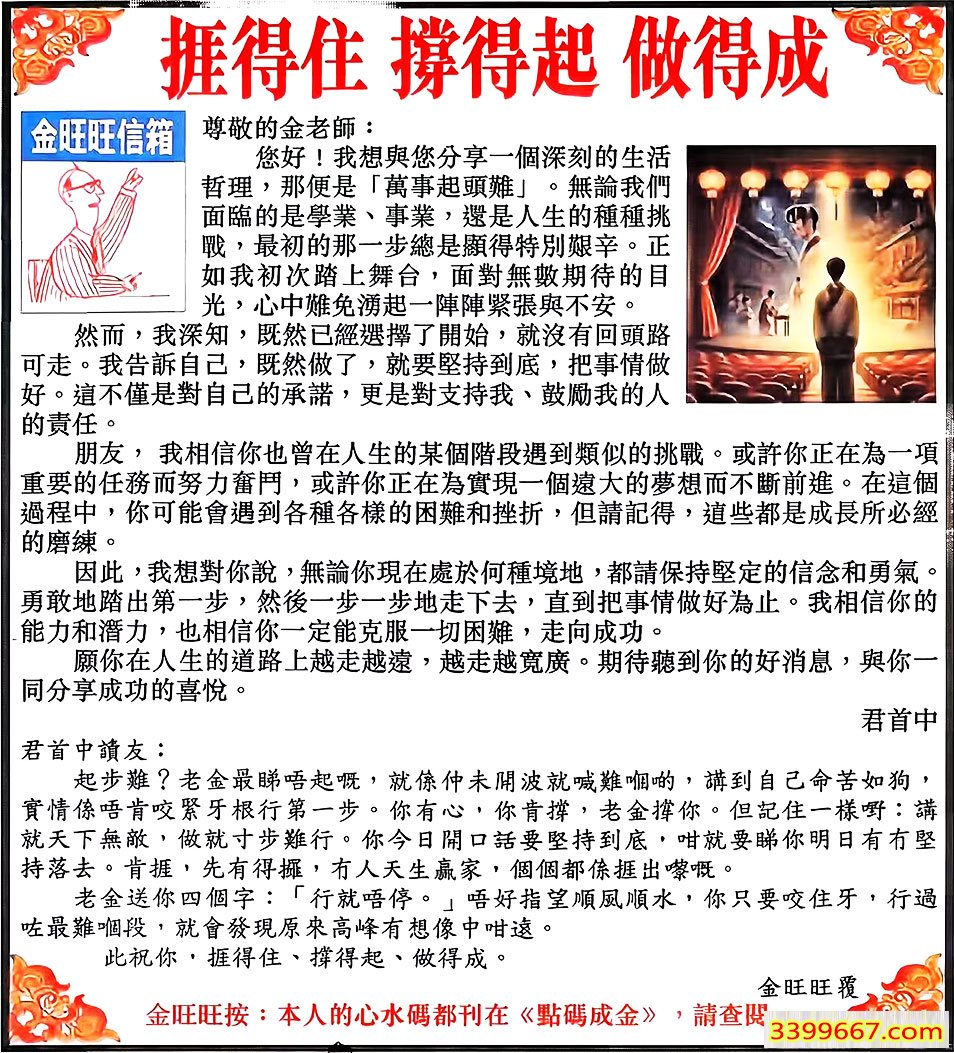 主题 :104期:金旺旺信箱彩民推荐→→《捱得起 撐得起 做得成》 |
