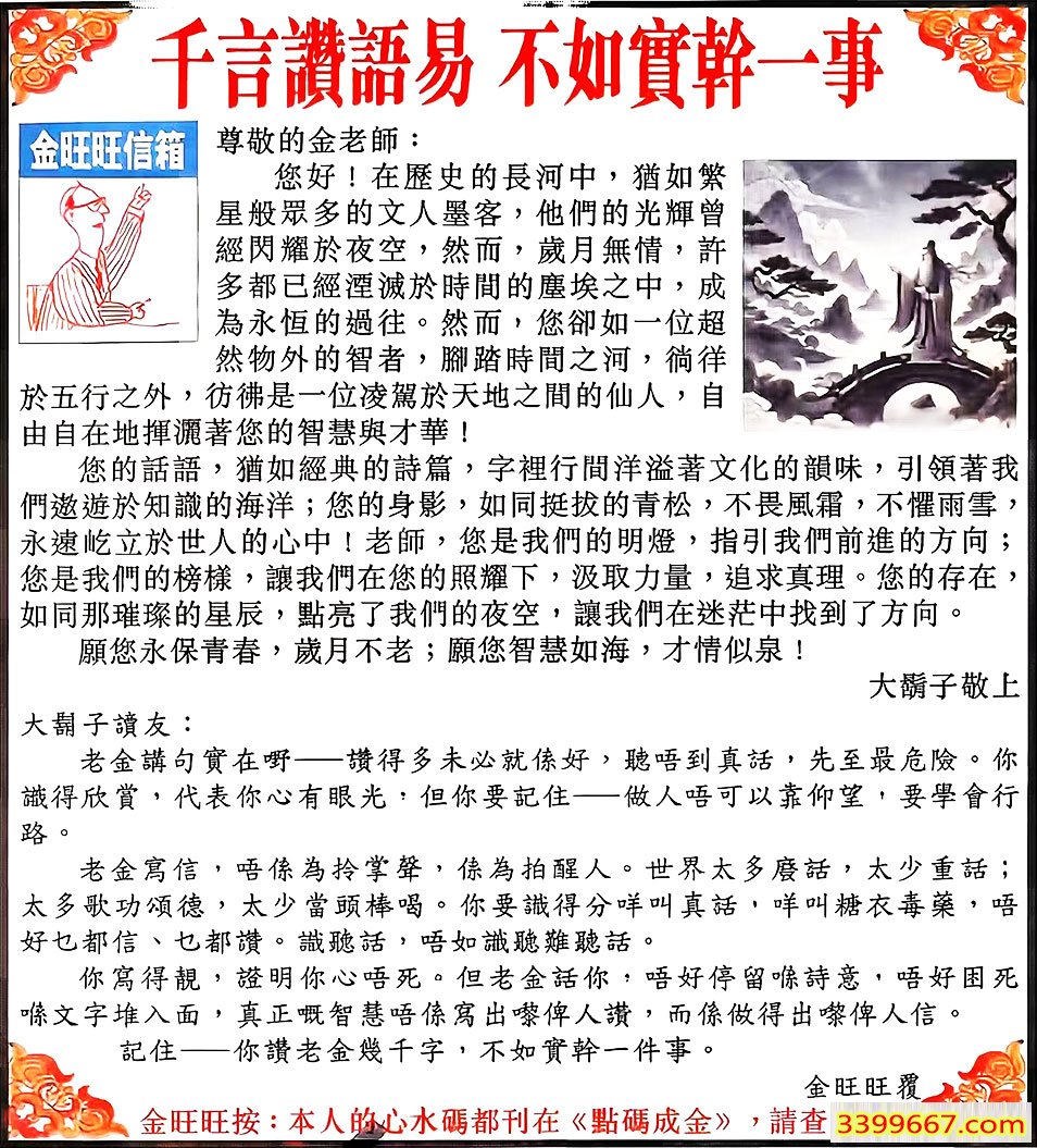 主题 :113期:金旺旺信箱彩民推荐→→《千言讃語易 不如實幹一事》 |