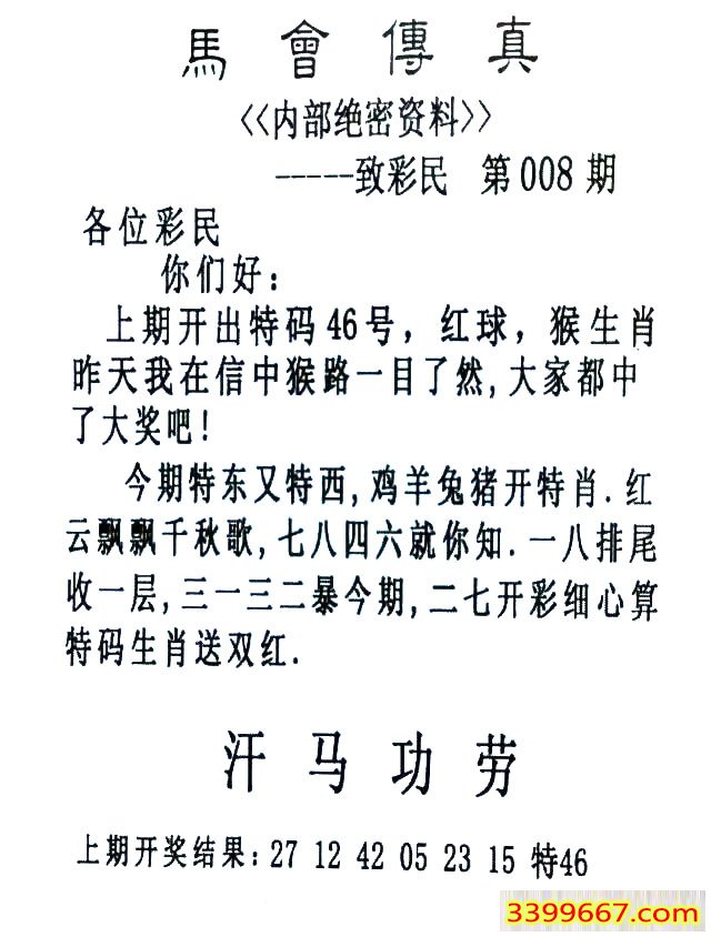 | 主题 :008期:首发推荐:≮馬會傳眞≯→(香港正版) |