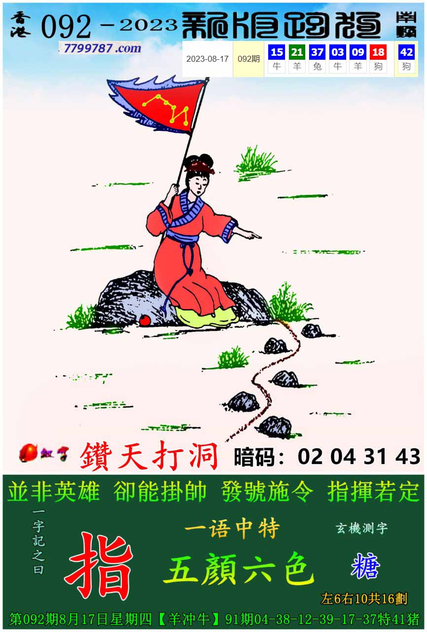 117期:新版跑狗一字記之曰【指】 玄機測字:【俏】