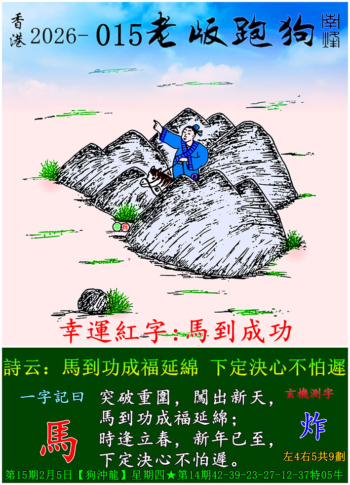 主题 :015期老版跑狗一字記之曰:【馬】 玄機測字:《炸》