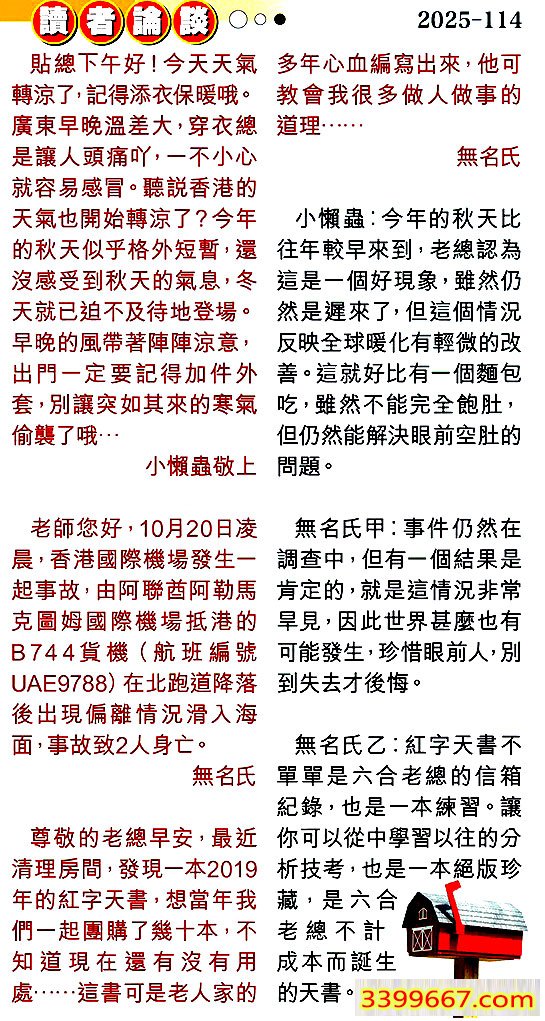 主题 :114期:彩民推荐〖貼信讀者論壇〗 |
