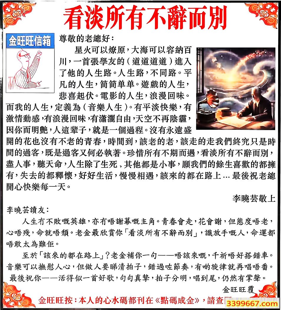128期:金旺旺信箱彩民推荐→→《看淡所有不辭而別》