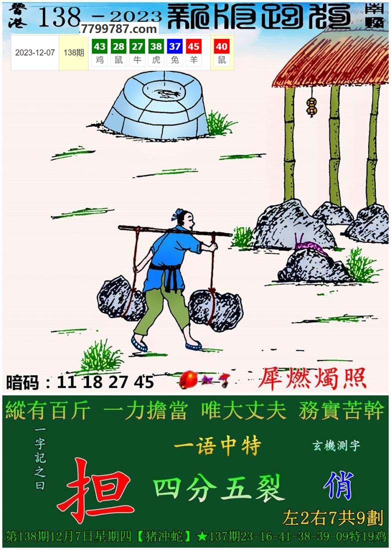 | 主题 :012期:新版跑狗一字記之曰【擔】 玄機測字:【俠】 |